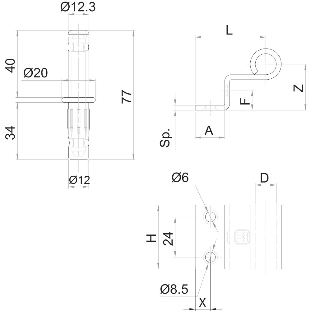 SERIE 471 Bandella diritta occhio laterale esterno doppia zanca con perno H=38