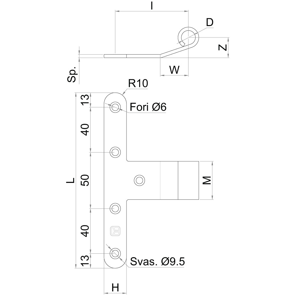 SERIE 717-20 Cardine a scomparsa occhio laterale base stretta