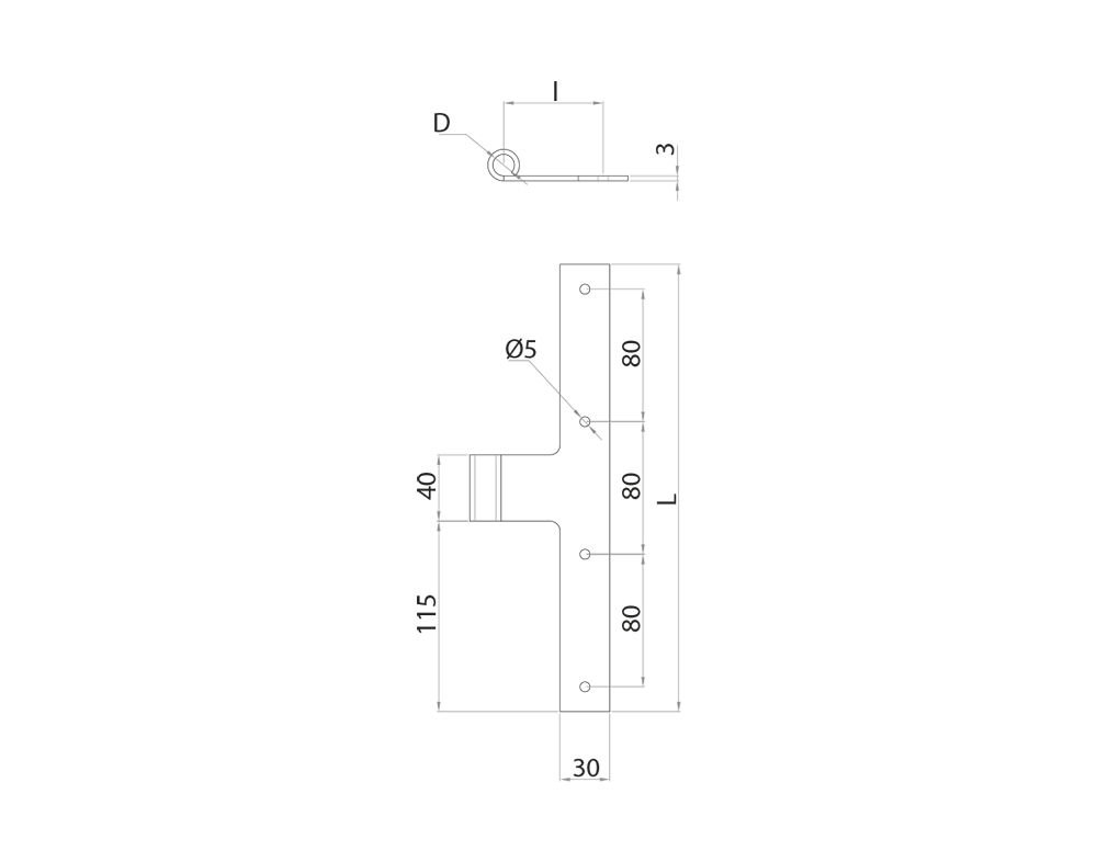 Bandella "T" occhio laterale collo lungo "Riviera"