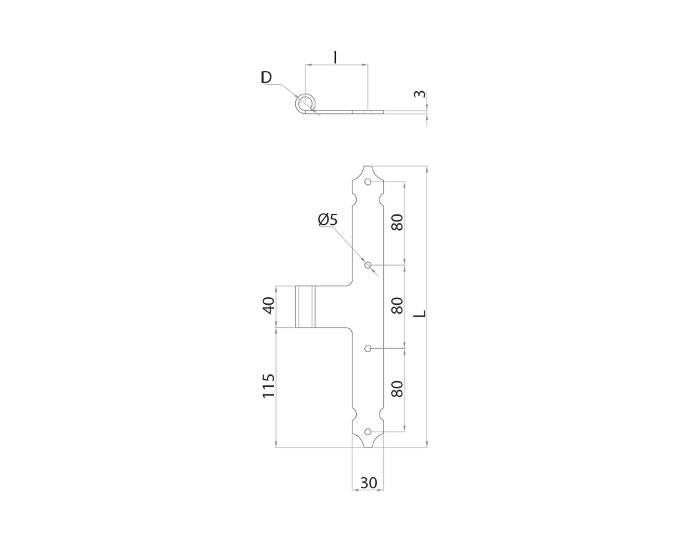 SERIE 330 Bandella "T" occhio laterale collo lungo "Versilia"